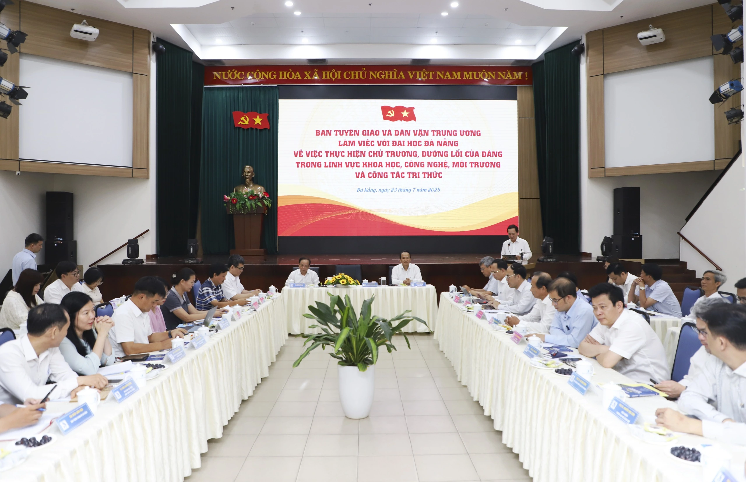 On July 23, the Central Propaganda and Mass Mobilization Commission had a working session with the University of Danang to implement the Party’s directives in the fields of science, technology, environment, and intellectual affairs.
